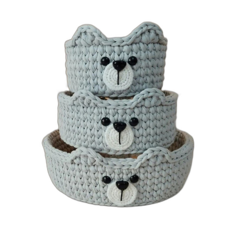 سبد سه عددی نظم دهنده لوازم کودک و سیسمونی شامل سه سبد به ابعاد دایره قطر 10و15و20 میباشد.قایب شستشو به وسیله اسفنج کف آلود و سپس آبکشی ناحیه پارچه ای است.کفی این محصول چوبی میباشد.نخ مصرفی در این محصول مرغوب و عاری از پرز و سوراخ است. استفاده به عنوان سبد لوسیون و سبد نظم دهنده سیسمونی و همچنین اتاق کودک میباشد.