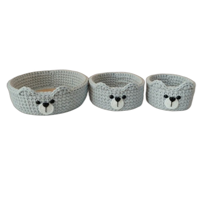 سبد سه عددی نظم دهنده لوازم کودک و سیسمونی شامل سه سبد به ابعاد دایره قطر 10و15و20 میباشد.قایب شستشو به وسیله اسفنج کف آلود و سپس آبکشی ناحیه پارچه ای است.کفی این محصول چوبی میباشد.نخ مصرفی در این محصول مرغوب و عاری از پرز و سوراخ است. استفاده به عنوان سبد لوسیون و سبد نظم دهنده سیسمونی و همچنین اتاق کودک میباشد.