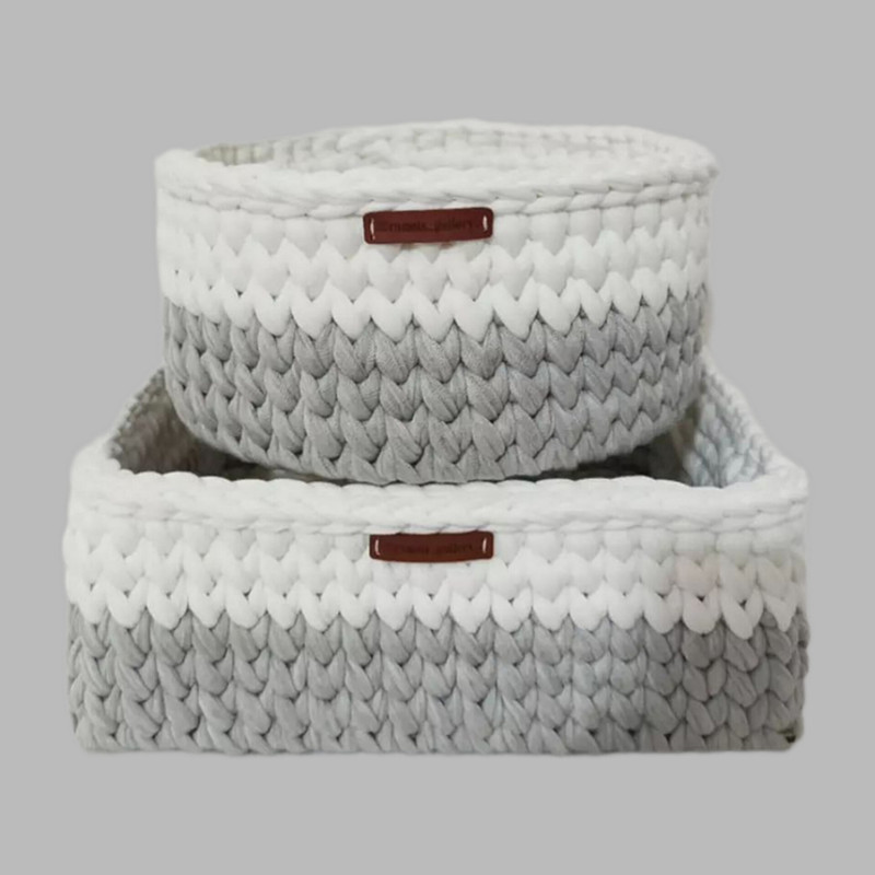 ست سبد قلاب بافی تریکو طرح نوزادی و کودک مجموعه 2 عددی