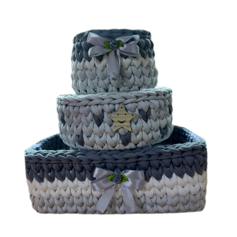 سبد قلاب بافی تریکو 3 پارچه مناسب سیسمونی نوزاد و اتاق کودک میباشد .برای مرتب کردن لوازم بهداشتی کودک پیشنهاد و گزینه مناسبی است.در ابعاد 25 در 15 و دایره 20 و 10 سانتیمتر میباشد.