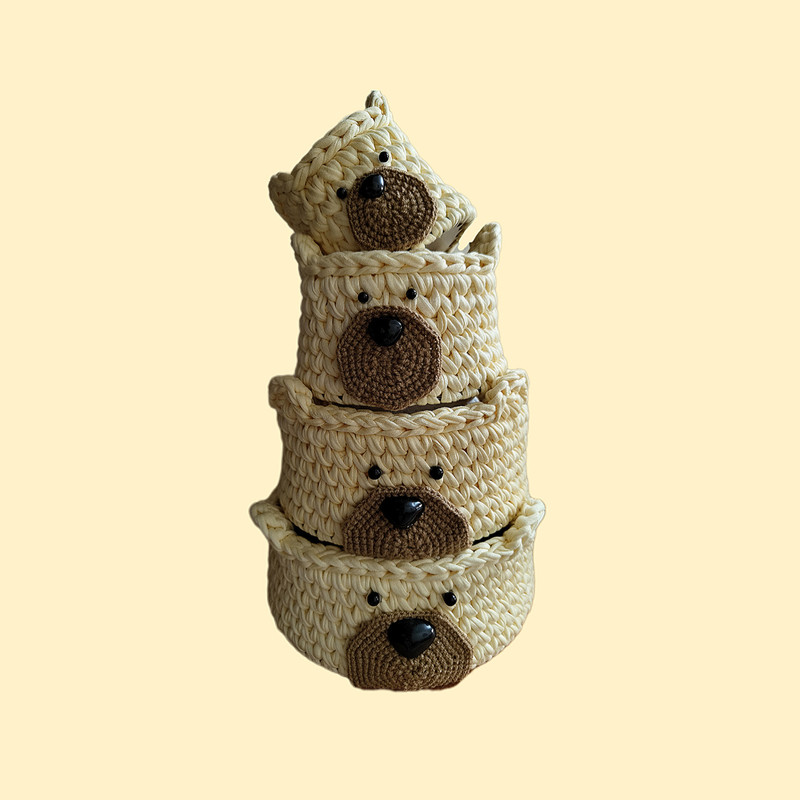 ست سبد لوازم کودک طرح خرسی ،مجموعه 4عددی ،مناسب سیسمونی نوزادان و اتاق کودک با دیواره محکمو زیبا میباشد.با قابلیت شستشو با اسفنج و شامپو میباشد. در قطر دایره 22و20و15و10سانتیمتر میباشد.