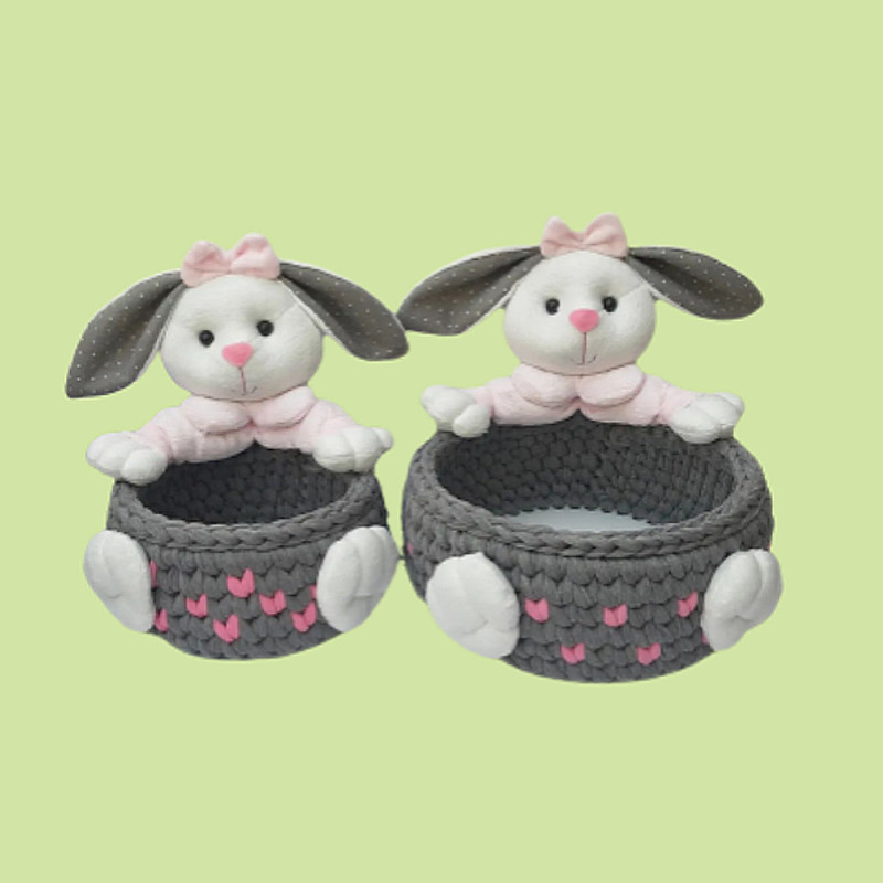 سبد قلاب بافی تریکو طرح عروسک خرگوشی کد 3265 مجموعه 2 عددی