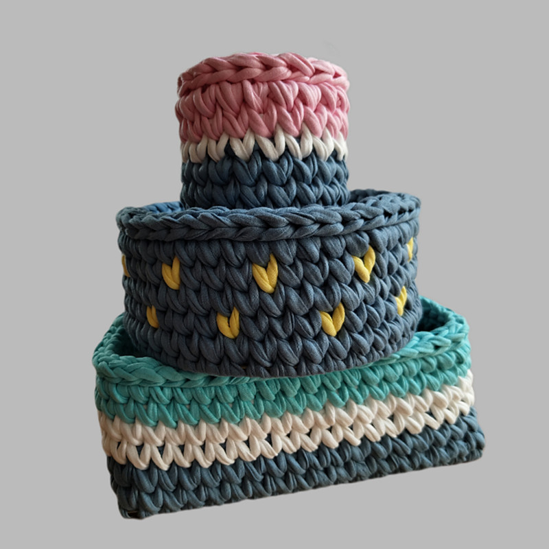 سبد قلاب بافی تریکو طرح رنگارنگ کد 70 مجموعه 3عددی
