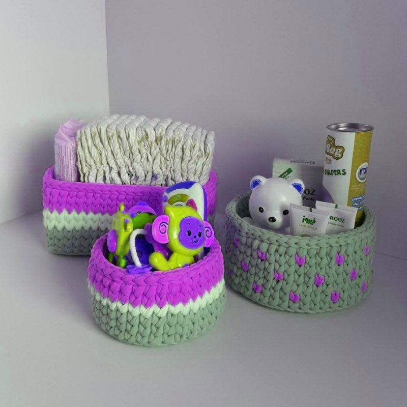 اگر دوست دارید اتاق کودک را با وسایل مدرن تزئین کنید این مجموعه را به شما پیشنهاد می کنیم. می توانید هر گونه وسیله کودک را در این سبدهای زیبا قرار دهید. ترکیب رنگ این سبدها را، تبدیل به زیباترین وسیله برای نظم دهی وسایل کودک کرده است. وسیله ای که در هر جای اتاق کودک که قرار دهید به عنوان تزئین نیز قابل استفاده می باشد. جنس سبد: نخ تریکو مرغوب و باکیفیت کاربرد: قابل استفاده به عنوان ارگانایزر لوازم کودک و نظم دهنده هر گونه وسیله اتاق جنس کف سبدها: چوب ام دی اف با ضخامت 3 میلیمتری جهت استقامت بیشتر کار ابعاد: سبد مستطیل بزرگ: 27x17x12 سانتیمتر سبد دایره بزرگ: 20x20x9 سانتیمتر سبد دایره کوچک: 15x15x8 سانتیمتر