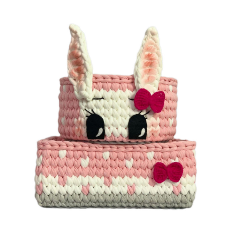 سبد قلاب بافی تریکو طرح خرگوشی نوزادی مجموعه 2 عددی