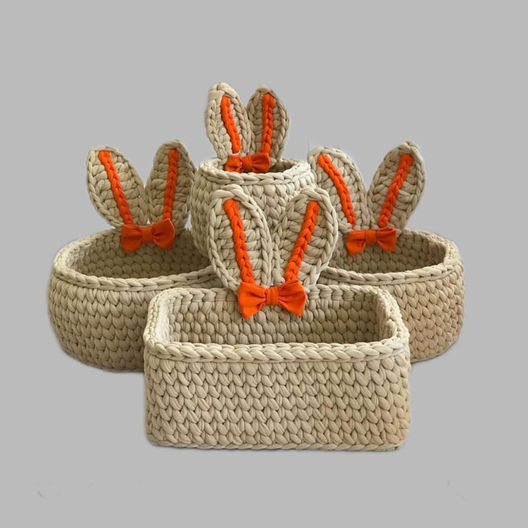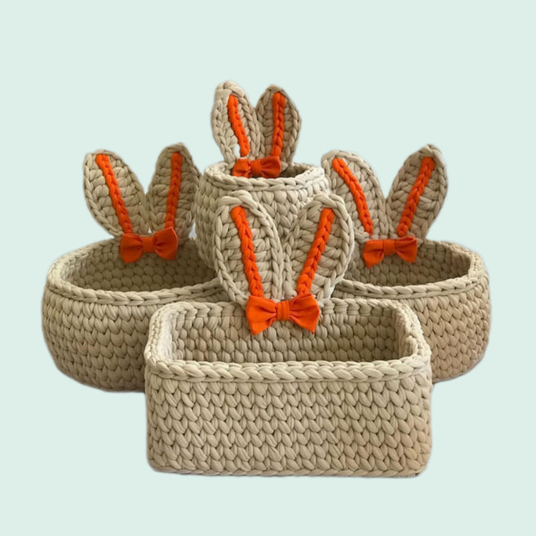سبد قلاب بافی تریکو طرح خرگوش سیمونی کد 1 مجموعه 4 عددی