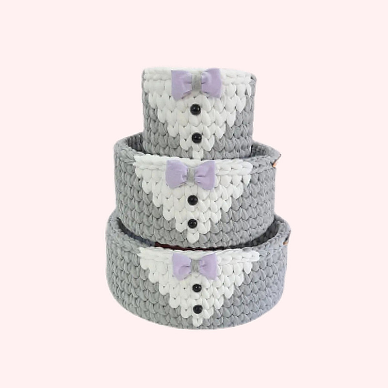 مجموعه 3 تایی سبد طرح کت پسرانه در رنگبندی مختلف با بافت با کیفیت از جنس تریکو میباشد. ابعاد کار 20 و 17و 12 سانت میباشد.مناسب تزیین اتاق کودک و نکهدارنده لوازم بهداشتی نوزاد و کودک بوده و استحکام و زیبایی بالایی دارد